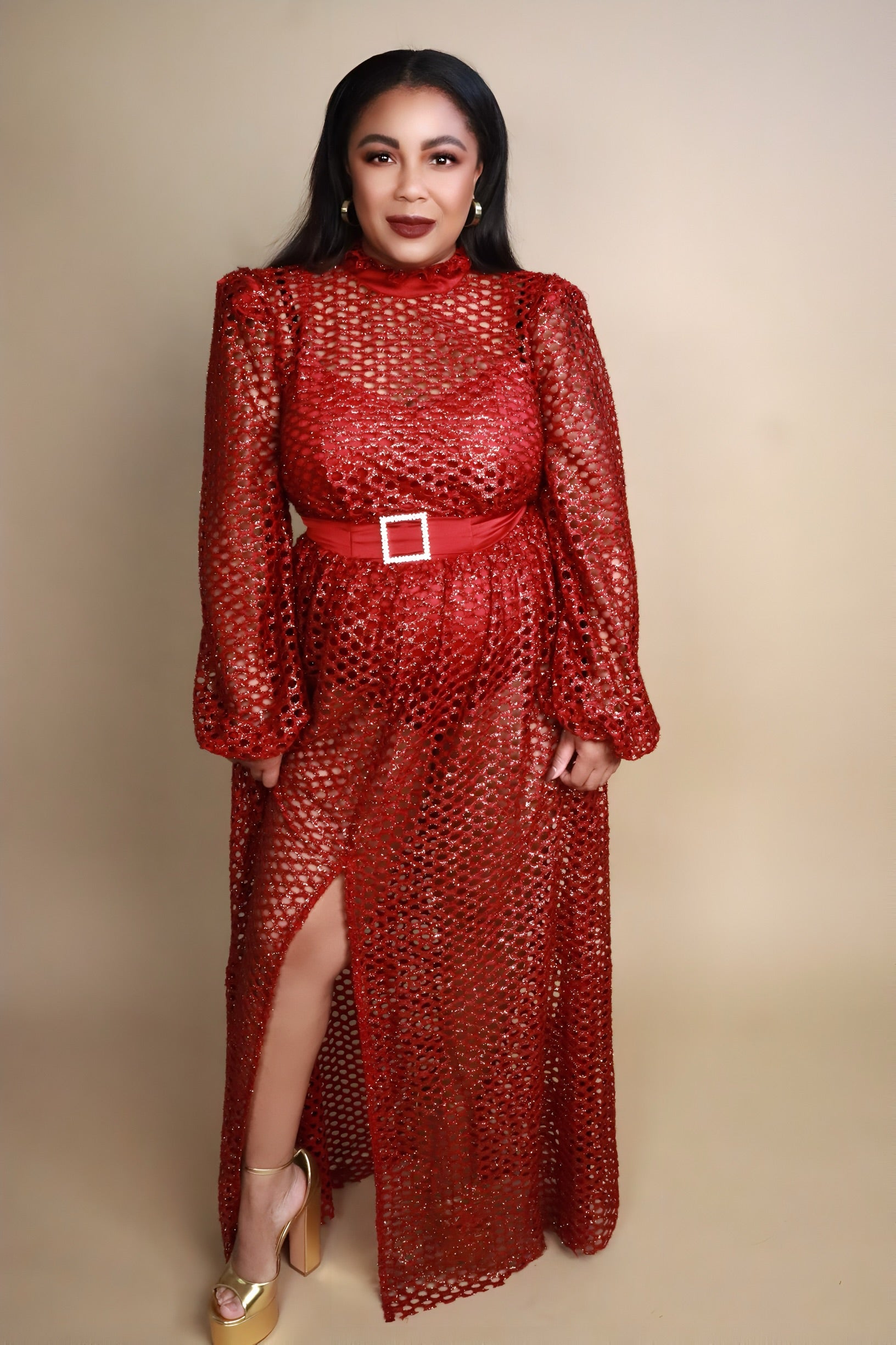 Make an unforgettable entrance in Delafoule’s Midnight Muse Maxi Dress — a daring blend of elegance and edge. This see-through, long-sleeved maxi dress features a bold front split and a flattering belted waist that accentuates every curve. Designed for confidence and allure, the Midnight Muse invites you to grab your favorite heels and strut with power. Available in striking red or classic black, it’s the statement piece your wardrobe’s been waiting for.